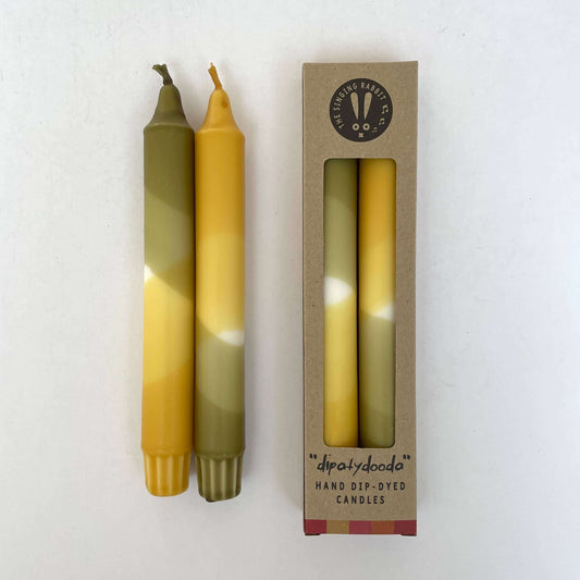 Olive Green and Mustard Yellow Dip Dyed Dinner CandlesRegular price £9.95 GBPRegular priceUnit price / per-