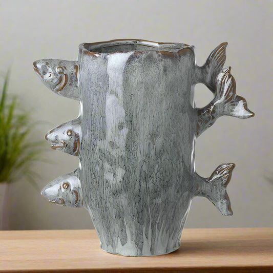 Blue Ceramic Vase with Fish