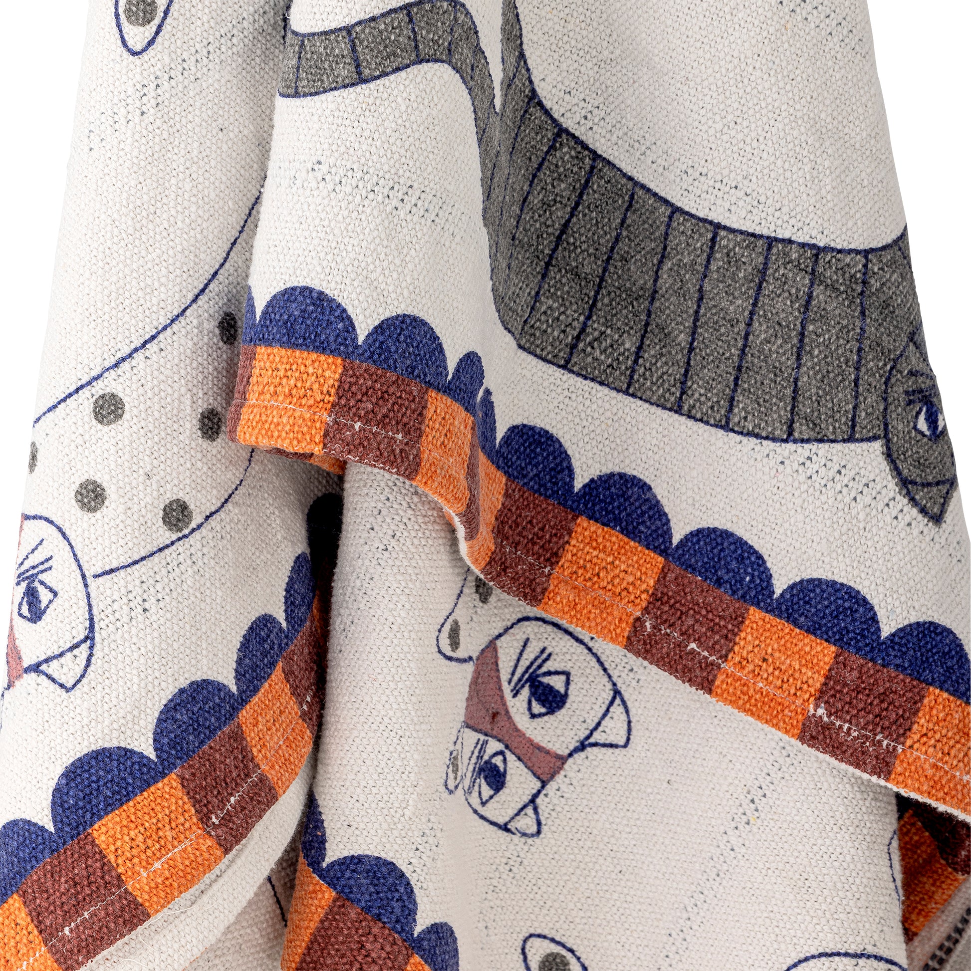 Finished with a rich deep orange trim, delicate blue scalloped edging, brown check details, and tassels at each corner, this throw is full of character while remaining soft and understated in its muted colour palette.