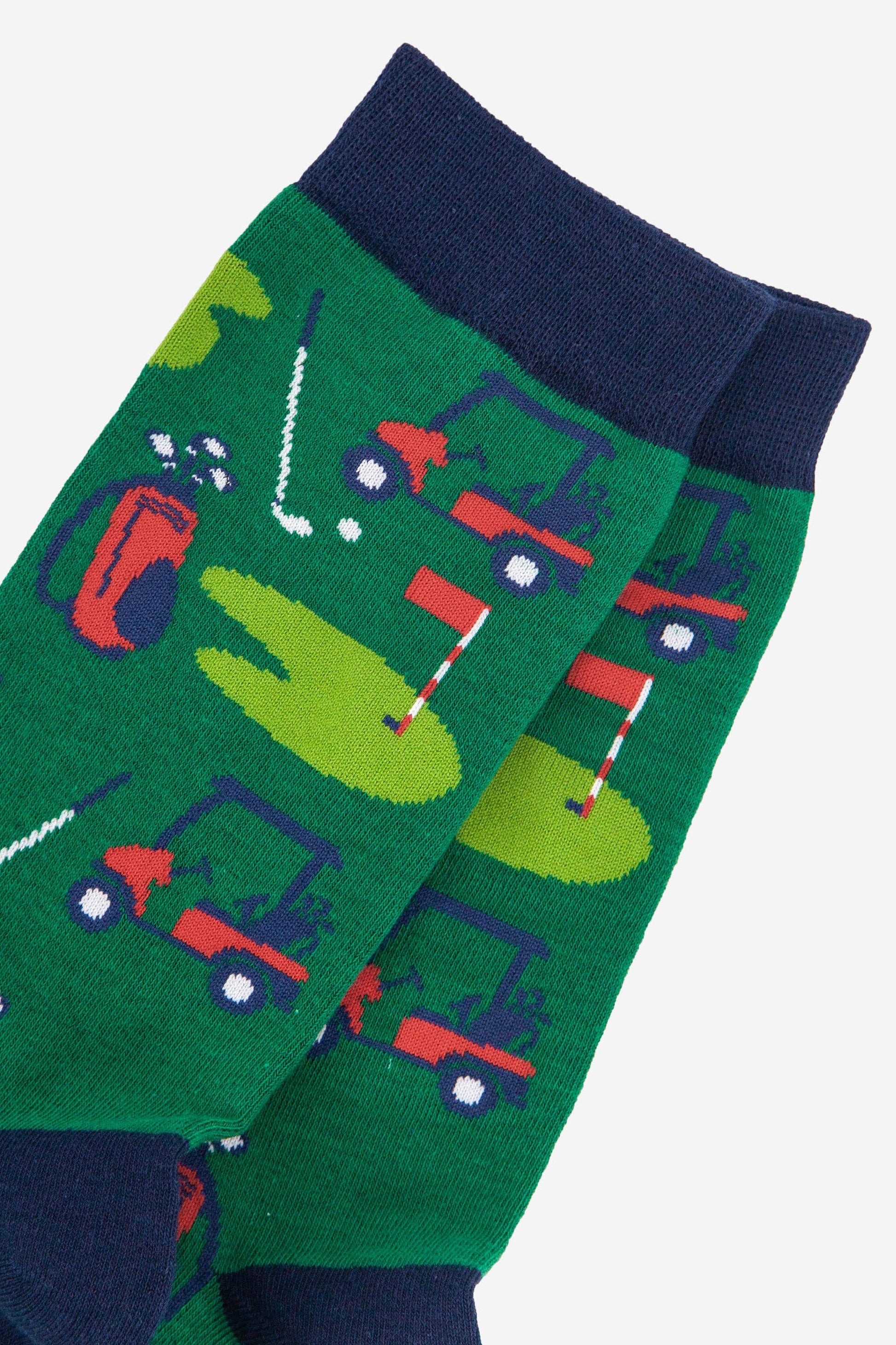 Whether you're tackling a challenging course or just enjoying a leisurely day outdoors, the right socks make all the difference. Our Men's On The Golfing Green and Cart Scene Bamboo Socks address the common issues of discomfort, odor, and environmental impact, providing you with a solution that enhances your golfing experience.